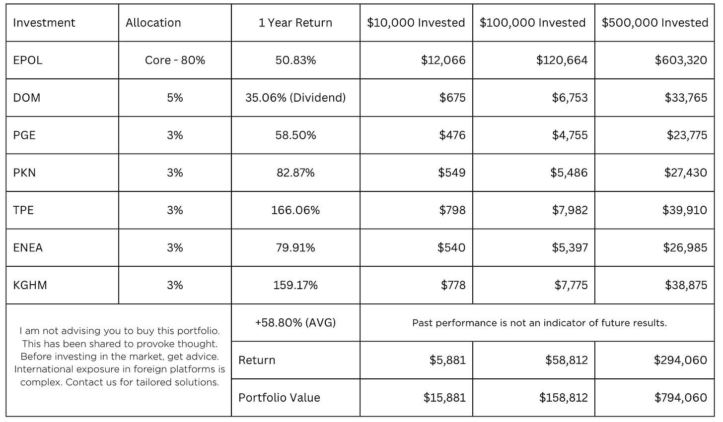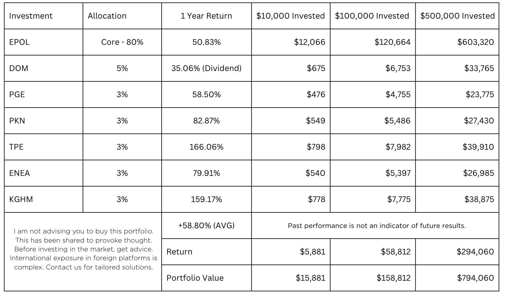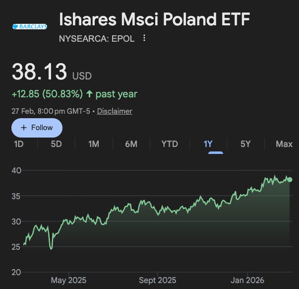 Couldn’t find one as the global ETF’s didn’t capture Poland.